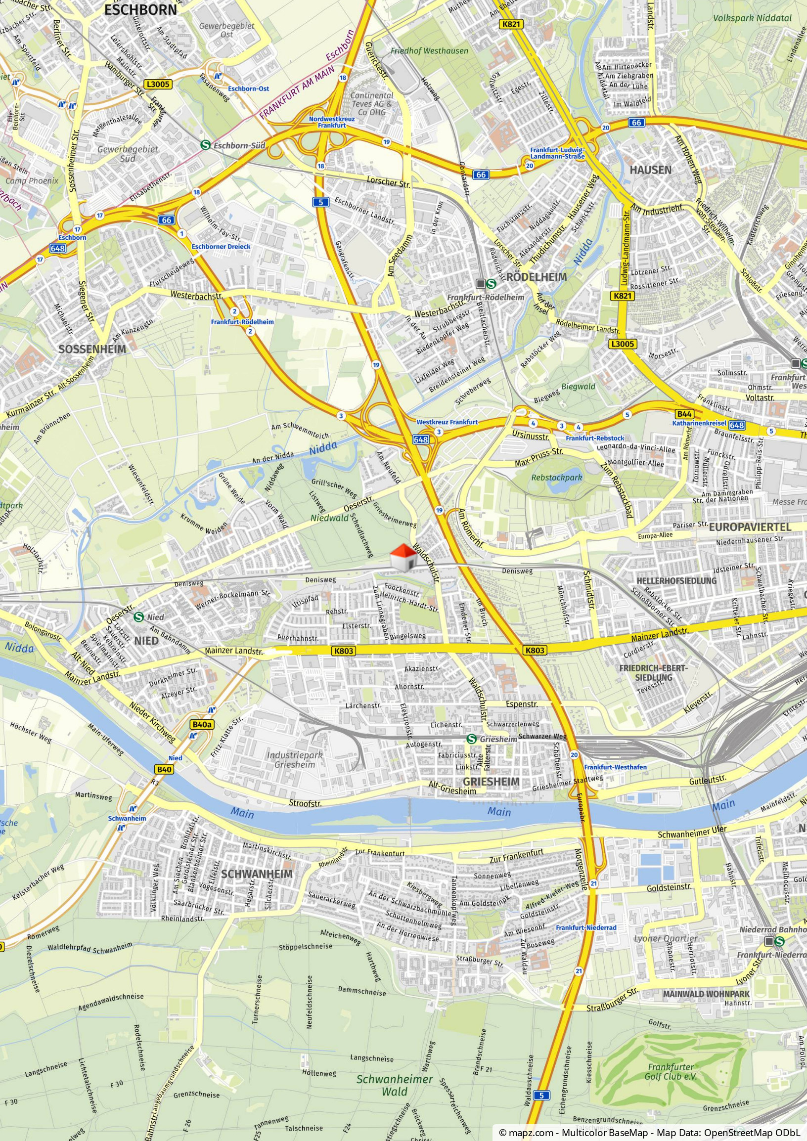 Mit dem Auto erreicht man in kurzer Zeit den Flughafen, das Bankenviertel, den Industriepark Höchst oder die Messe Frankfurt.