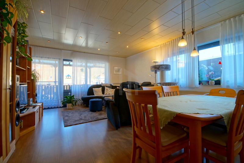 Diese solide in massiver Bauweise errichtete Doppelhaushälfte bietet eine ideale Kombination aus Familienfreundlichkeit und modernem Wohnkomfort. Das lichtdurchflutete Wohn- und Esszimmer schafft eine einladende Atmosphäre für gemeinsame Momente. Der großzügige überdachte Balkon lädt dazu ein, die frische Luft zu genießen und bietet dabei Schutz vor den Elementen.