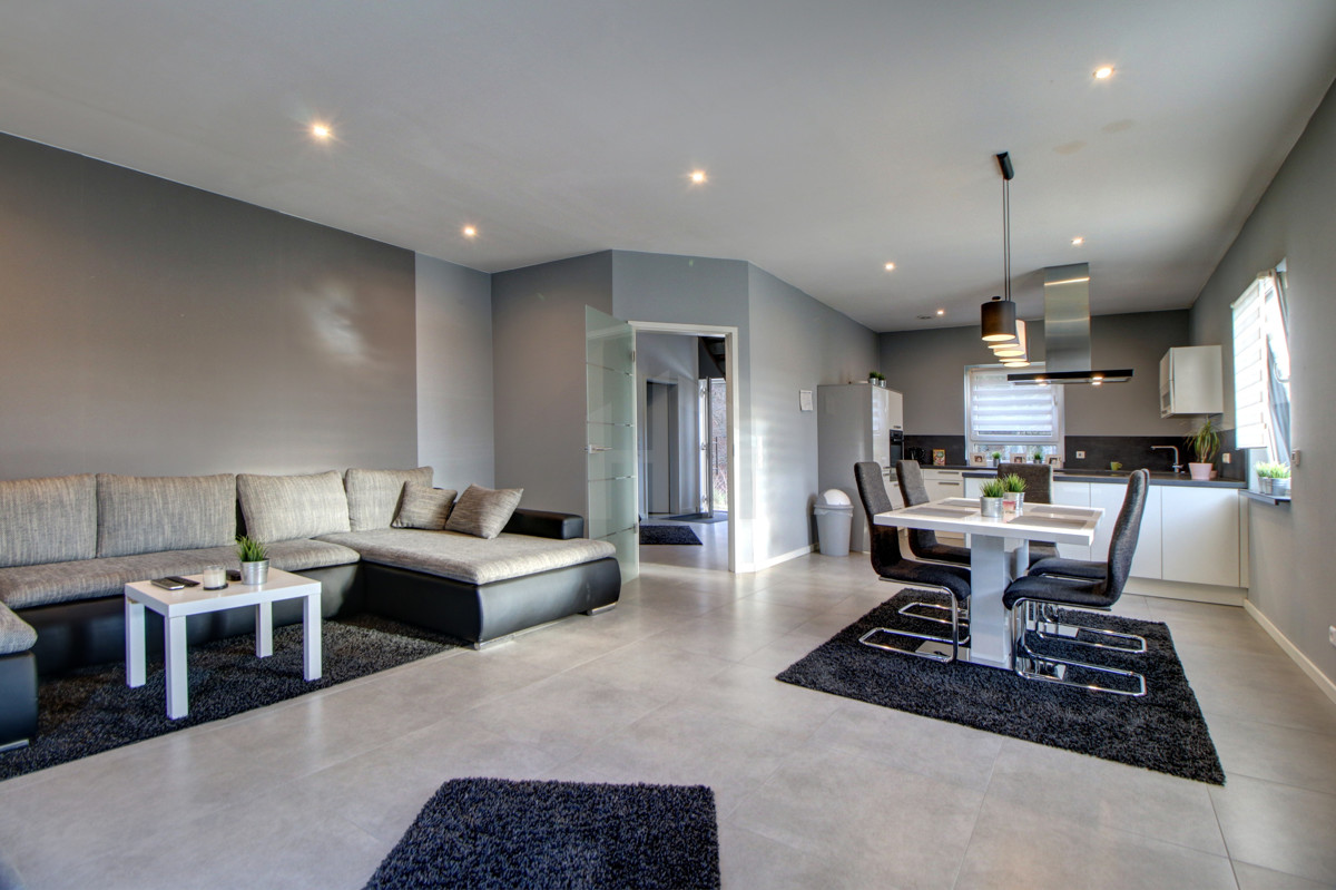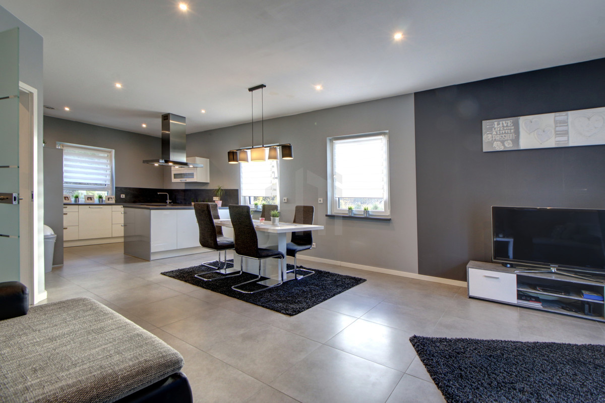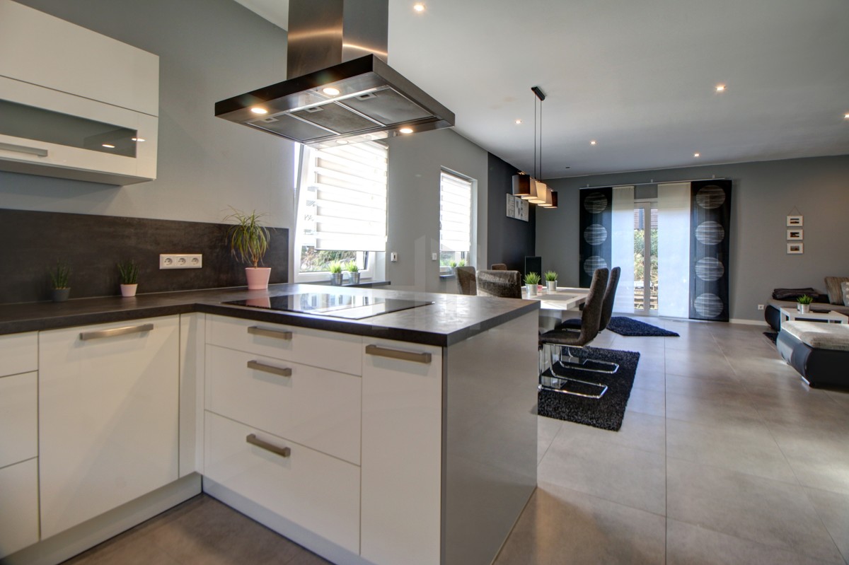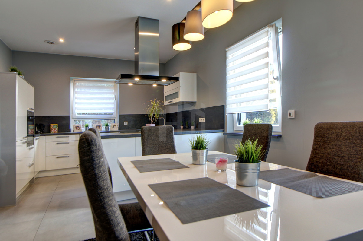 Im weitläufigen Wohnzimmer trifft sich die Familie zum Lesen, Spielen oder um den nächsten Wochenendausflug zu planen. Die offene Wohnküche glänzt durch hochmoderne Einbauten: Hier gewinnen Sie jedes Kochduell im Freundeskreis und beim Empfang von Gästen oder dem gemeinsamen Kochen bleibt niemand allein.
