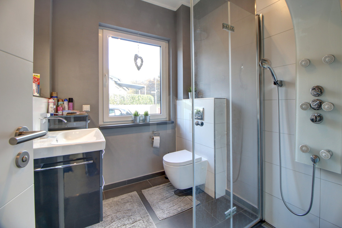 Die attraktiv geschnittene und repräsentative Immobilie bietet auf zwei Etagen jedem Familienmitglied genügend Platz und Entfaltungsmöglichkeiten: Das Obergeschoss eignet sich durch 3 Schlafzimmer und das große Tageslichtbad mit Badewanne und Dusche - das noch nach eigenem Geschmack gestaltet werden kann - als eigenständiger Bereich für die Kinder, im ansprechenden Schlafzimmer im Erdgeschoß mit eigenem Duschbad und vielen Stellmöglichkeiten sind die Eltern oder auch Gäste ganz für sich.