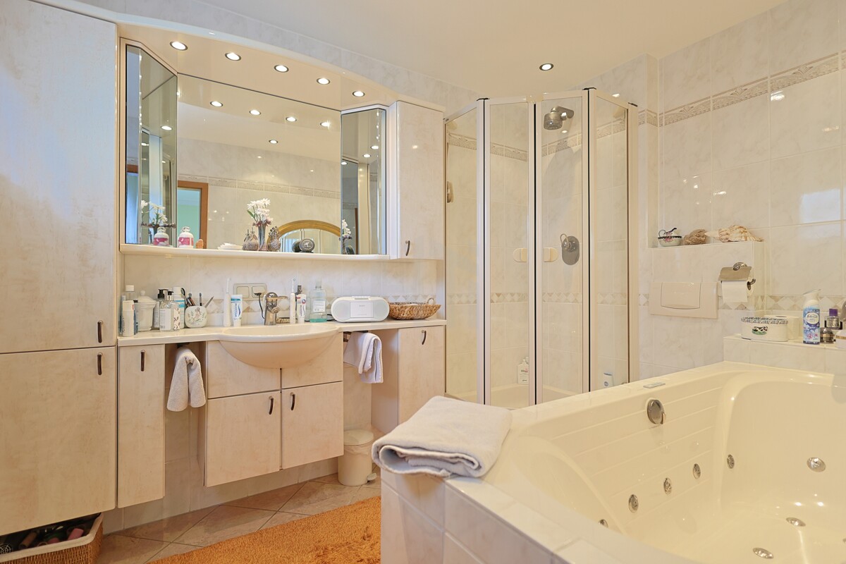 + Badezimmer en suite mit Wanne und Dusche (EG)