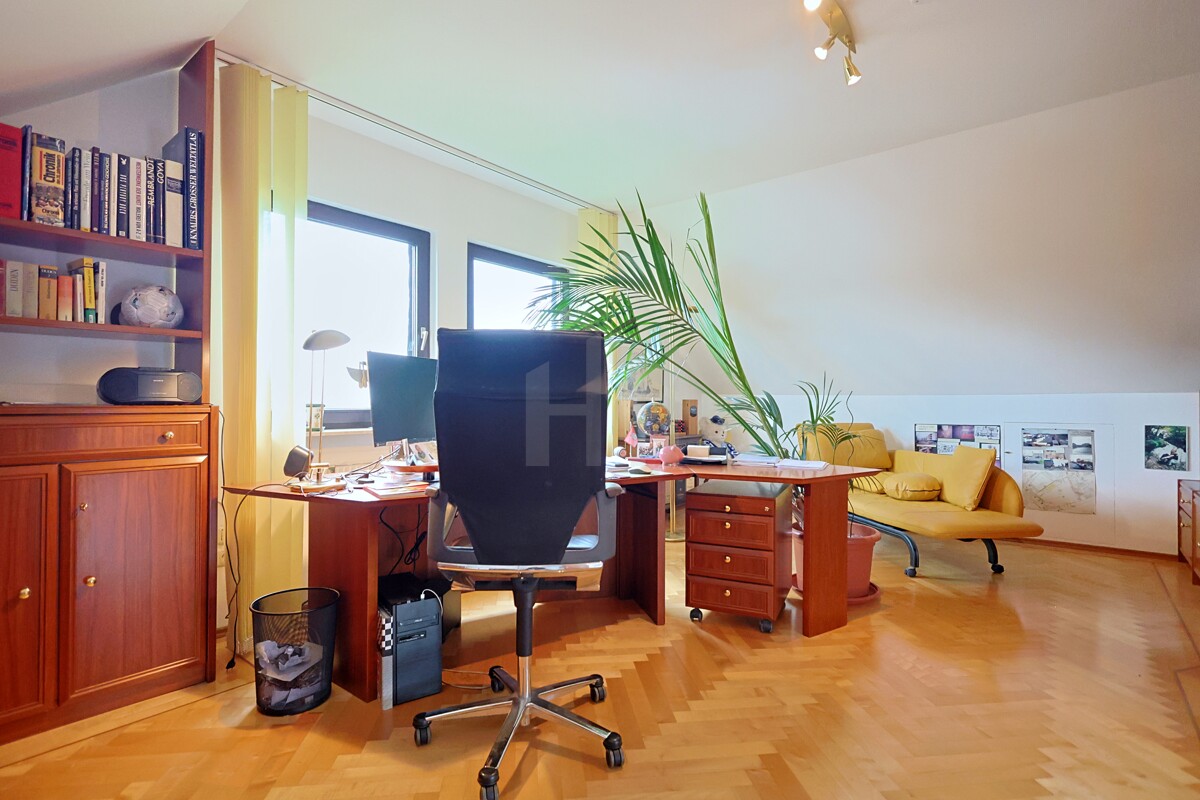 Auch das Untergeschoss überzeugt: Ein großes, wohnlich ausgebautes Zimmer eröffnet flexible Möglichkeiten – ob Homeoffice, Fitnessraum oder Hobbybereich. Im angrenzenden Hobbyraum mit eigener Sauna sowie Badezimmer mit WC und Dusche können Sie herrlich entspannen. Die übrigen Kellerräume sind praktisch angeordnet und bieten viel Platz zum Waschen, Bügeln, für Vorräte oder Sportgeräte. Ein separater Außenzugang führt direkt in den Garten.