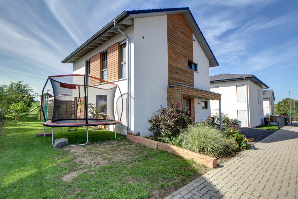 Das moderne und hoch effiziente Energiesparhaus befindet sich in bevorzugter Lage von Niddatal - Bönstadt, die besonders von Familien geschätzt wird: In den ruhigen Anliegerstraßen des Wohngebietes können Kinder noch unbeschwert spielen und Rad fahren und finden in der netten, hilfsbereiten Nachbarschaft auch immer einen passenden Spielgefährten. Die unmittelbare Nähe zu Feld und Wiesen lädt zu ausgedehnten Freizeitaktivitäten ein.
