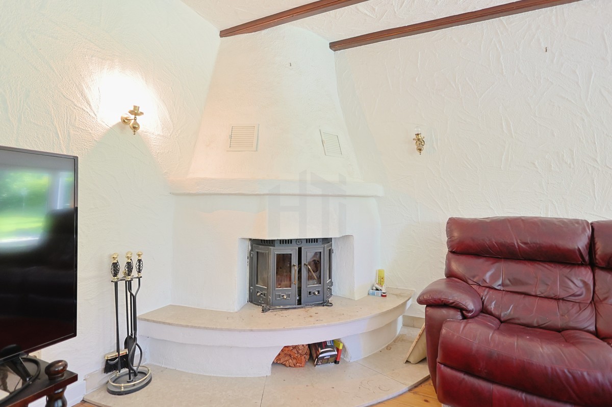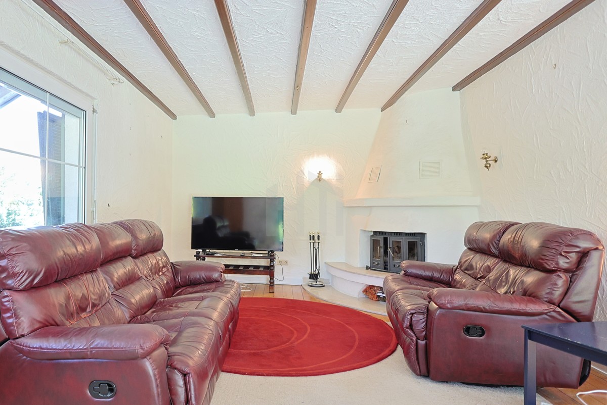 Der lichtdurchflutete Wohn- und Essbereich bildet das Herzstück des Hauses. Ein gemütlicher Kamin sorgt hier an kalten Tagen für wohlige Wärme und eine behagliche Atmosphäre. Vom Wohnzimmer aus gelangen Sie direkt auf die sonnige Terrasse – ideal für entspannte Stunden mit der Familie oder gesellige Abende mit Freunden. Ein zusätzlicher Balkon im Obergeschoss bietet einen ruhigen Rückzugsort mit Blick ins Grüne.