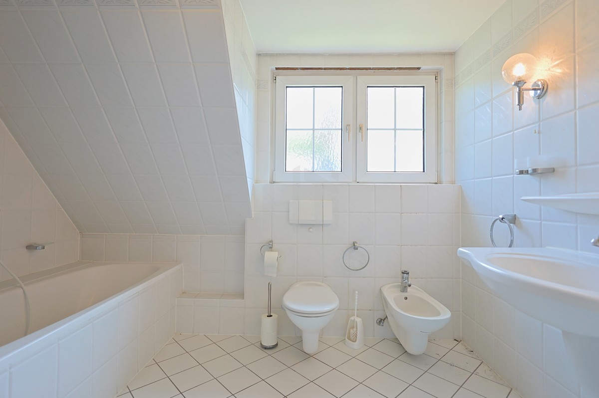 Zwei voll ausgestattete Badezimmer gewähren Komfort für die ganze Familie. In Erd- und Obergeschoss stehen Ihnen fünf geräumige Schlafzimmer zur Verfügung. Ob als Elternschlafzimmer, Kinderzimmer, Gäste- oder Arbeitszimmer, hier findet jedes Familienmitglied ausreichend Raum für die eigene Entfaltung und Privatsphäre.