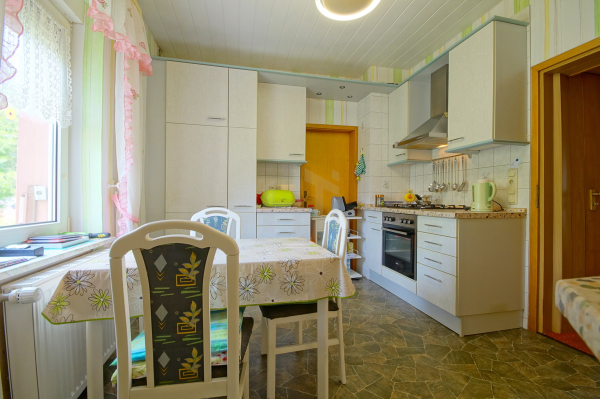 Dieses heimelige Einfamilienhaus ist das reinste Raumwunder. Sie wohnen hier mit einer Wohnfläche von ca. 145 m² verteilt auf zwei Ebenen komfortabel mit Ihrer großen Familie oder zwei Generationen. Bereits im Erdgeschoss finden Sie ein geräumiges Schlafzimmer, ein Arbeitszimmer und ein Badezimmer mit Dusche. Der großzügige Wohn-Essbereich sowie die gemütliche Wohnküche bilden den Wohnmittelpunkt Ihres neuen Zuhauses. Im Dachgeschoss befinden sich drei weitere Schlafzimmer, ein zusätzliches Nebenzimmer, eine weitere voll eingerichtete Küche und ein Badezimmer mit Wanne.