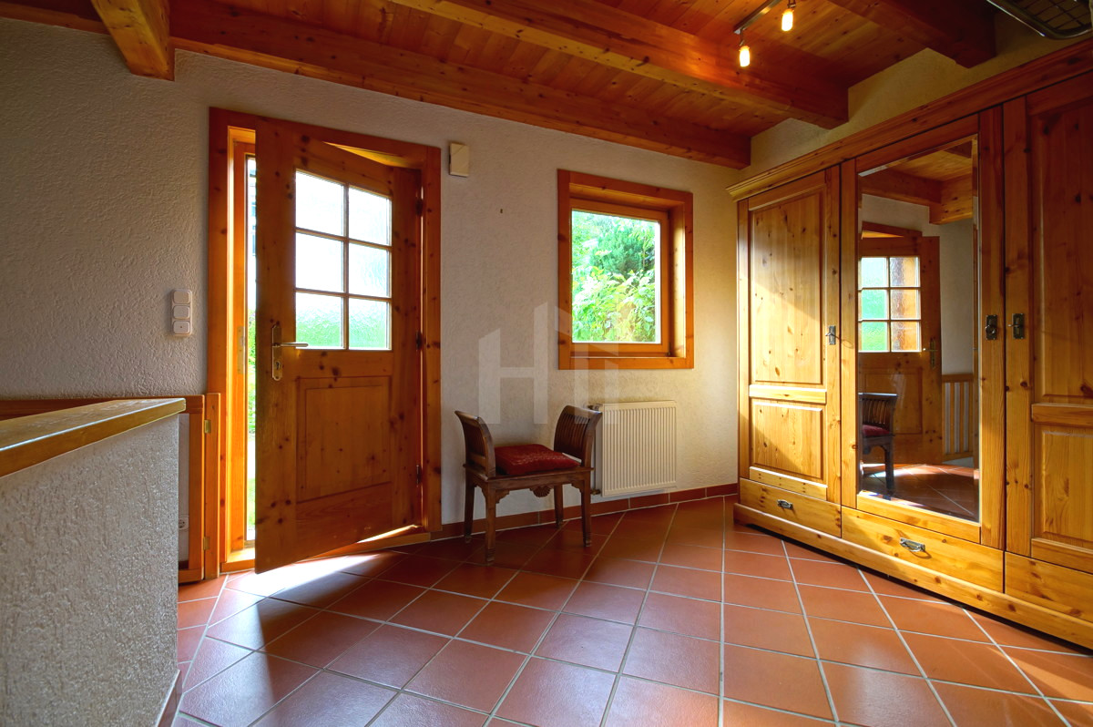 Genießen Sie die Sonne und frische Luft auf einem der beiden Balkone, die Ihnen einen herrlichen Ausblick ins Tal über die Dächer des Ortskerns und auf die grüne Umgebung bieten. Der eingewachsene Garten auf dem vollständig eingezäunten Anwesen ist das reinste Paradies für Naturliebhaber und lädt zum Verweilen und Entspannen ein. Hier können Sie nach getaner Arbeit die Sonne genießen, Ihre Kinder können sicher spielen und auch der Hund hat genügend Auslauf.