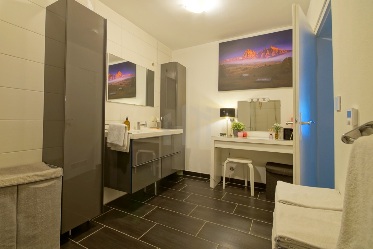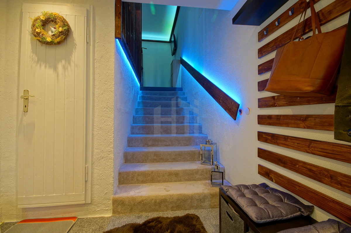 Die moderne Einbauküche mit Kochinsel und einem praktischen großzügigen Vorratsraum wird Sie begeistern. Hier gewinnen Sie in Ihrem Freundeskreis jedes Kochduell. Im Obergeschoss befinden sich das großzügige Wohnzimmer, das Schlafzimmer sowie das stilvoll ausgestattete Badezimmer. Auf den beiden Dachterrassen, eine davon vom Schlafzimmer aus zugänglich, genießen Sie gemütliche Stunden in erholsamer Atmosphäre.