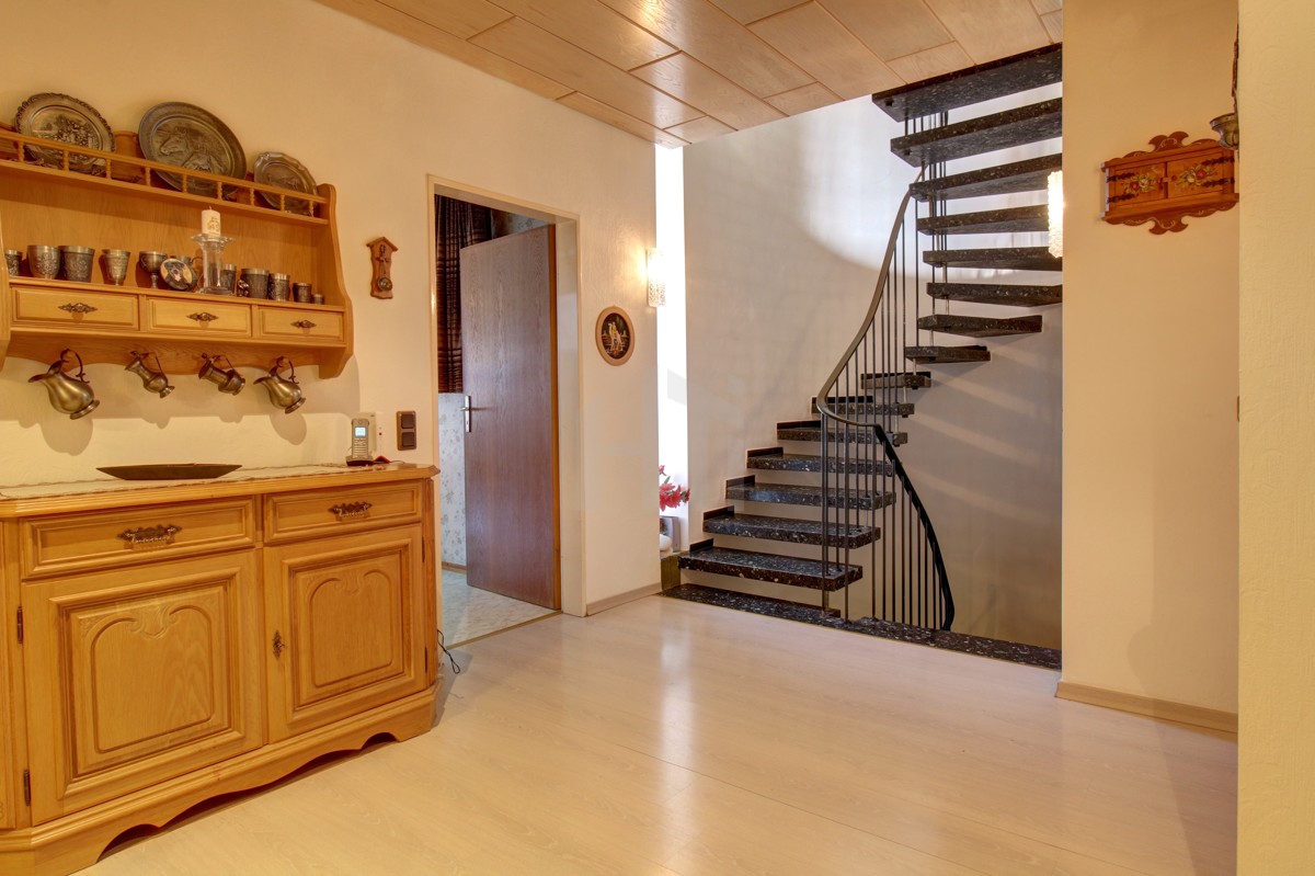 Dieses imposante Einfamilienhaus in naturnaher Taunuslage wird Sie vom ersten Augenblick begeistern! Sie wohnen hier mit einer Wohnfläche von ca. 200 m² verteilt auf zwei Ebenen komfortabel mit Ihrer großen Familie oder zwei Generationen. Die großzügige Essdiele mit Zugang zur Küche und zum gemütlichen Wohnzimmer mit Kaminecke ist der Wohnmittelpunkt des Hauses. Hier planen Sie zusammen mit Ihrer Familie den nächsten Ausflug, den Spieleabend oder genießen den Sonntagsbrunch. In dieser Ebene befinden sich bereits zwei Schlafzimmer und das Badezimmer mit Wanne und Dusche.