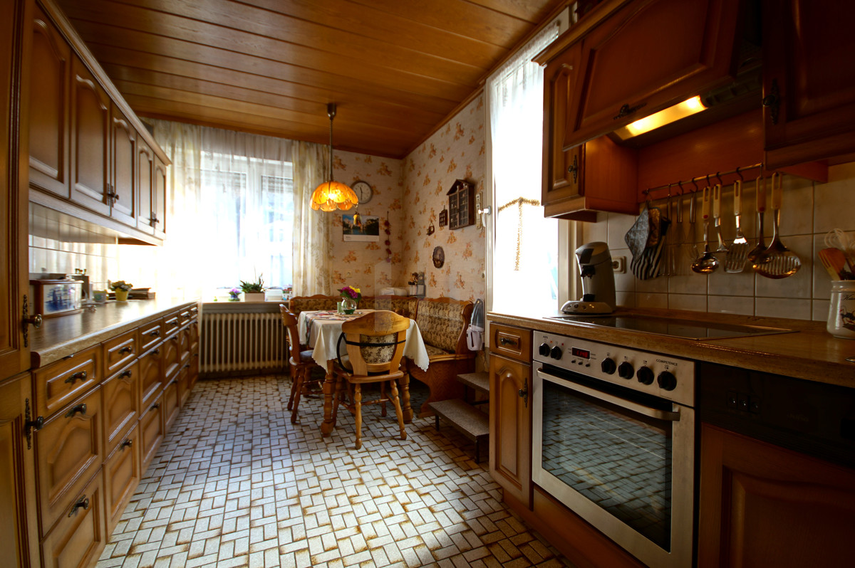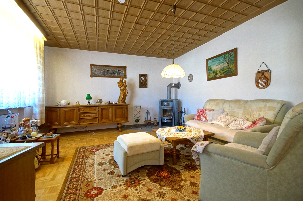 Dieses heimelige Einfamilienhaus ist das reinste Raumwunder. Sie wohnen hier mit einer Wohnfläche von ca. 160 m² verteilt auf zwei Ebenen komfortabel mit Ihrer großen Familie oder zwei Generationen. Bereits im Erdgeschoss finden Sie ein geräumiges Schlafzimmer, ein Arbeitszimmer und ein Badezimmer mit Dusche. Der großzügige Wohn-Essbereich mit Kaminofen sowie die gemütliche Wohnküche bilden den Wohnmittelpunkt Ihres neuen Zuhauses. Im Dachgeschoss befinden sich drei weitere Schlafzimmer eine weitere voll eingerichtete Küche und ein Badezimmer mit Wanne.