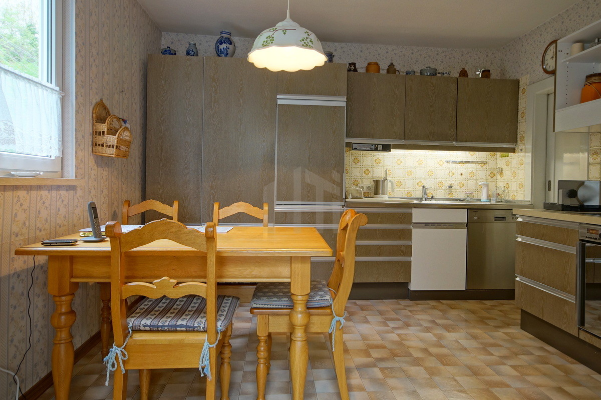 Die besonderen Merkmale dieser Immobilie umfassen eine neue Gaszentralheizung, die für behagliche Wärme und niedrige Energiekosten sorgt. Die Hanglage des Grundstücks bietet einen atemberaubenden Blick auf die Umgebung und die Dächer von Schmitten. Die Nutzungsmöglichkeiten für Mehrgenerationen oder große Familien machen dieses Anwesen zu einem flexiblen Wohntraum.