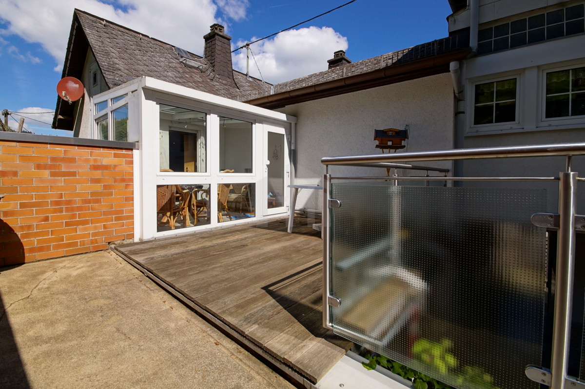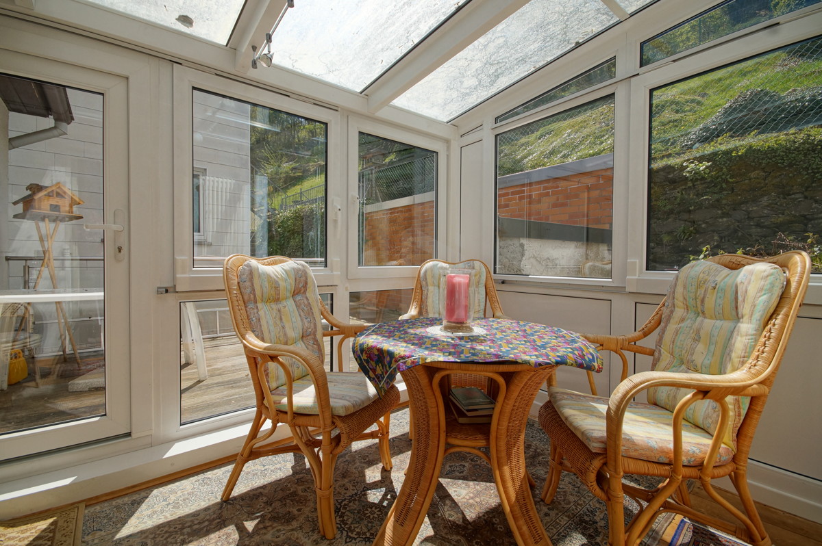 Ein geräumiges Wohnhaus mit separater vermieteter Wohnung bietet ausreichend Platz für eine große Familie oder die Nutzung durch mehrere Generationen. Ein Wintergarten jeweils zu beiden Wohneinheiten lädt zu gemütlichen Stunden im Grünen ein und bietet ganzjährig einen herrlichen Ausblick auf die umliegende Landschaft. Eine Werkstatt bietet Hobbyhandwerkern oder kreativen Köpfen Raum für ihre Projekte und Ideen. Der liebevoll angelegte terrassierte Garten mit altem Baumbestand lädt zum Verweilen und Entspannen ein. Der Innenhof bietet zusätzlichen Raum für gemeinsame Aktivitäten im Freien, beispielsweise das nächste Grillfest mit Ihrer Familie und Freunden. Sieben Garagen, teilweise vermietet, bieten ausreichend Stellfläche für Fahrzeuge oder können alternativ als Lagerfläche genutzt werden.