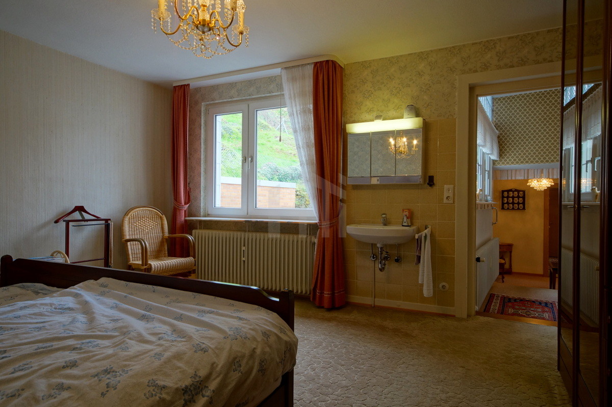 Die charmante Familienoase mit separater vermieteter Einliegerwohnung, Werkstatthalle und sieben Garagen befindet sich in einer malerischen Hanglage in Schmitten im Taunus.