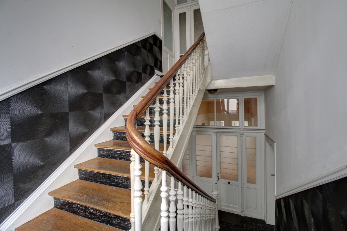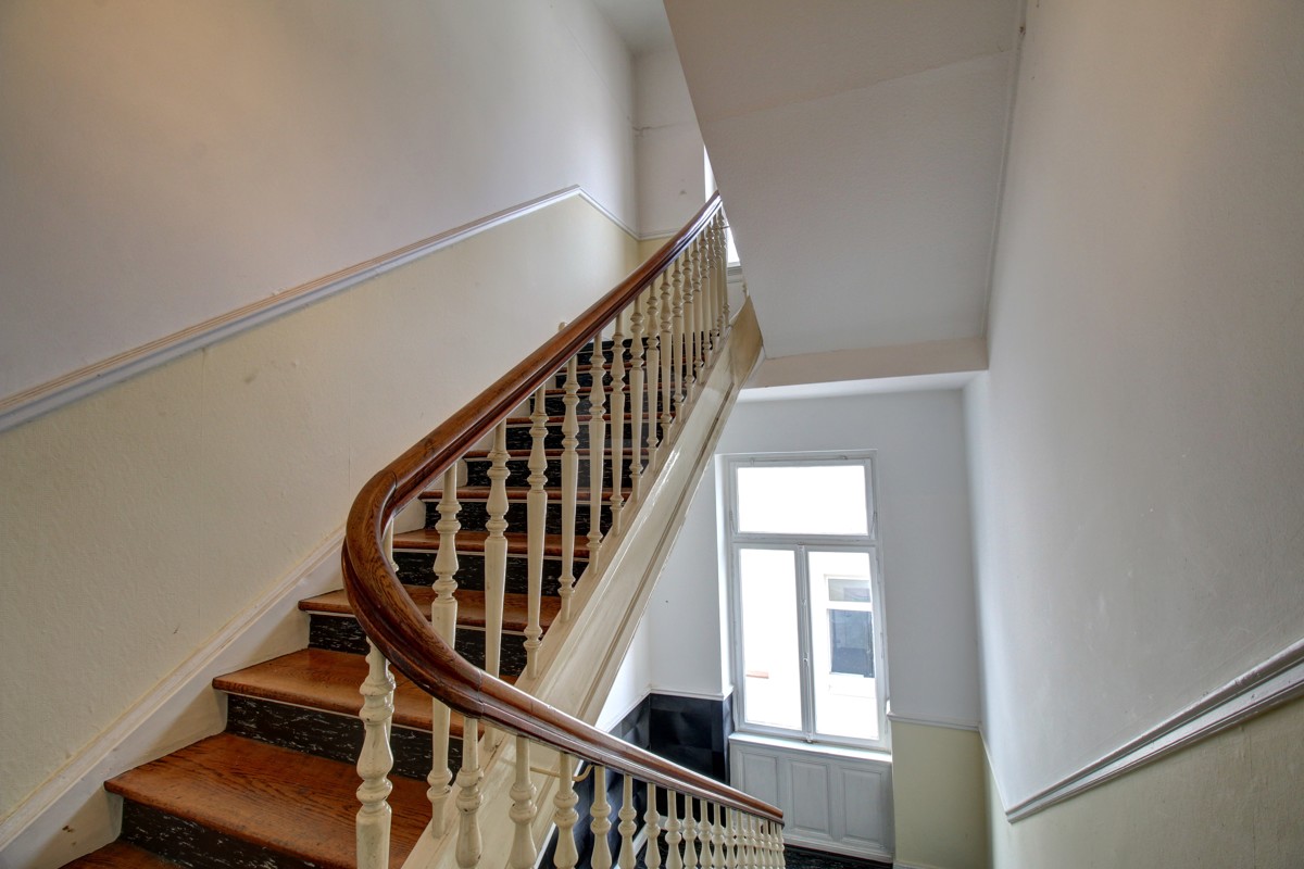 Durch die antike und schwere Eingangstür betritt man das Treppenhaus mit eleganter Holztreppe, die den Zugang zu den einzelnen Wohnungen ermöglicht: Drei nahezu identische, in sich abgeschlossene Wohneinheiten stehen hier zur freien Verfügung. Das wohnraummäßig ausgebaute Dachgeschoss kann nach Genehmigung als Maisonette oder zusätzliche Wohnung genutzt werden.