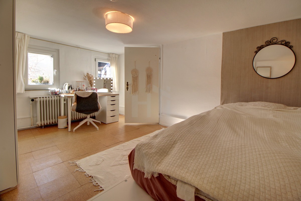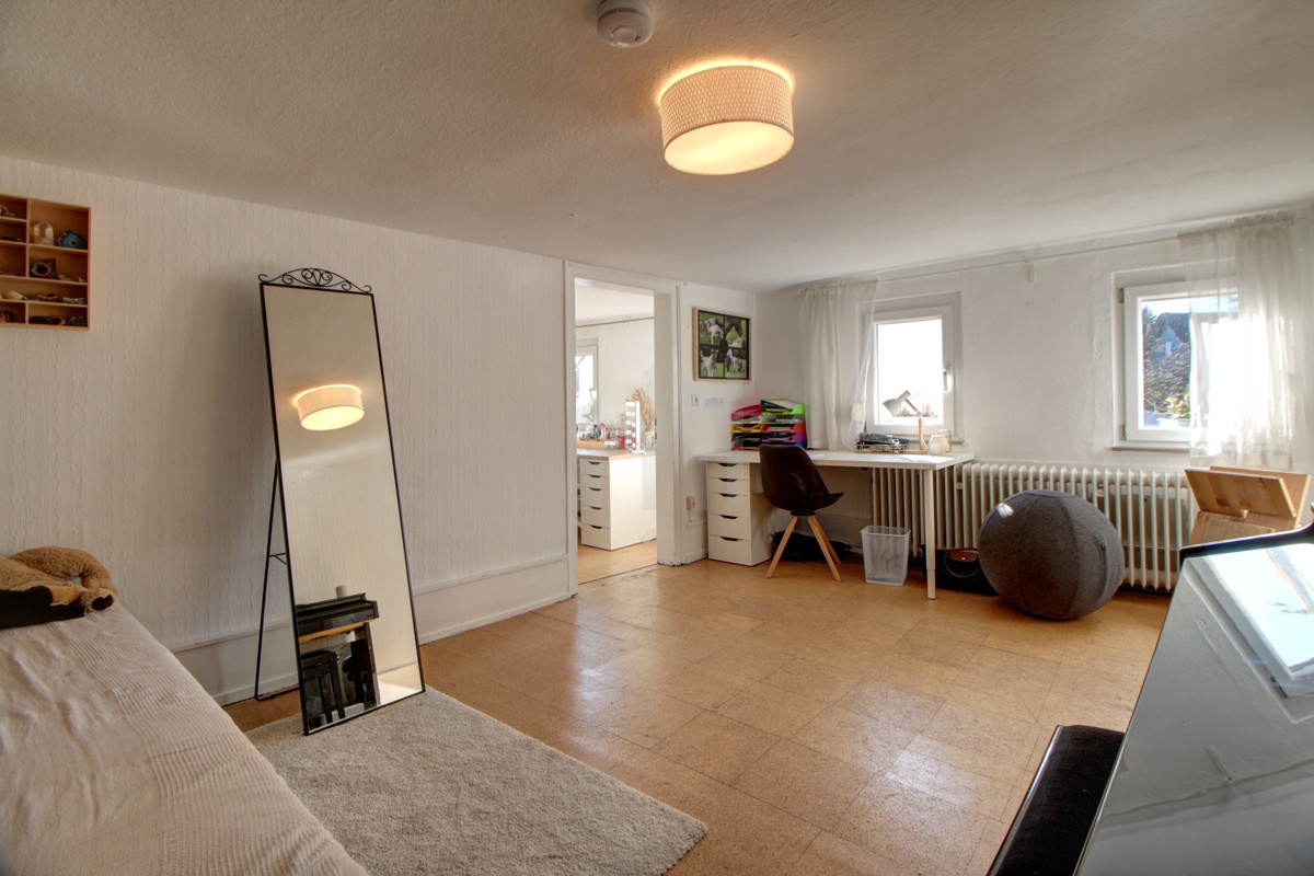 Im Obergeschoss sorgen zwei helle Zimmer sowie das Tageslichtbad mit Badewanne für Platz und Entfaltungsmöglichkeiten, auch eine Kombination aus Schlafzimmer und Homeoffice oder Ankleide ist denkbar.