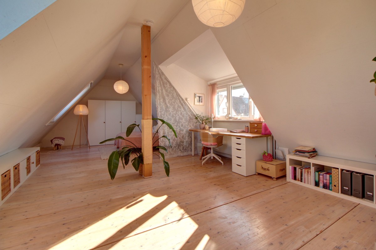 Das Dachgeschoss mit der imposanten Gaube ist bis zum Giebel offen und bietet einen sagenhaften Ausblick sowie ein besonderes Wohnambiente, um das Sie Ihre Gäste beneiden werden!