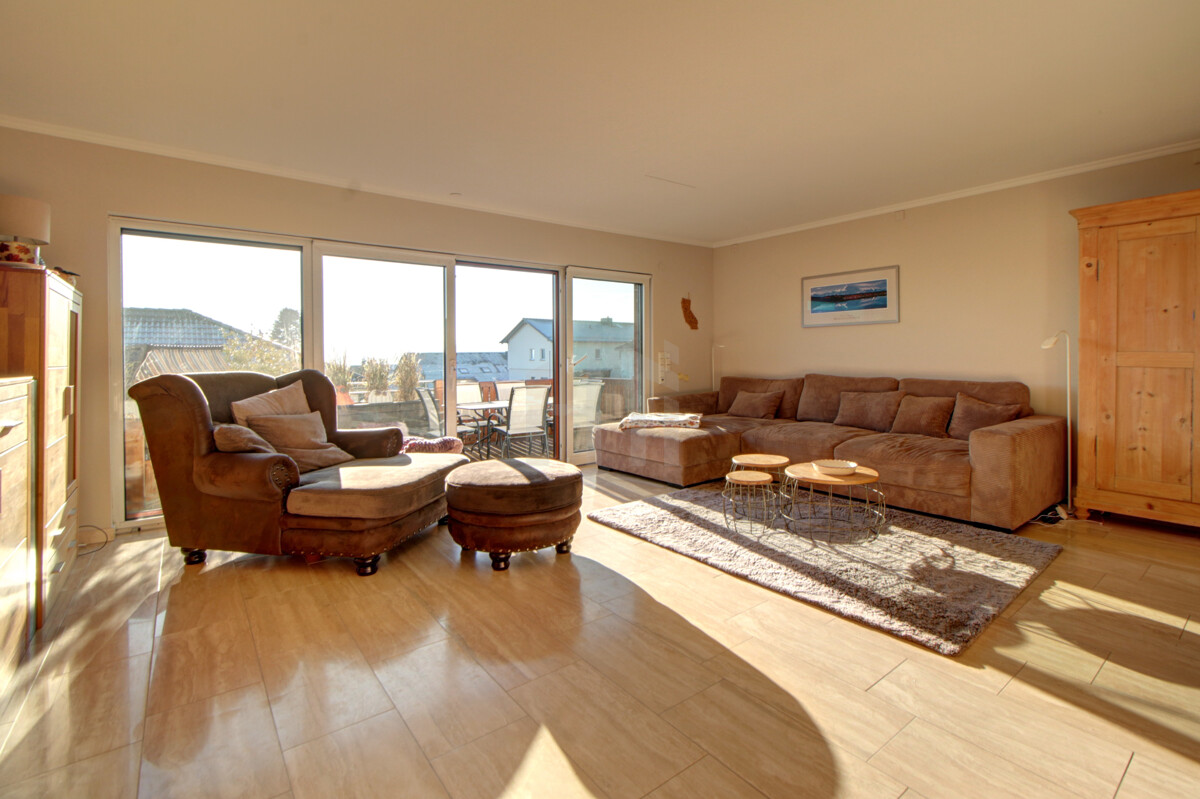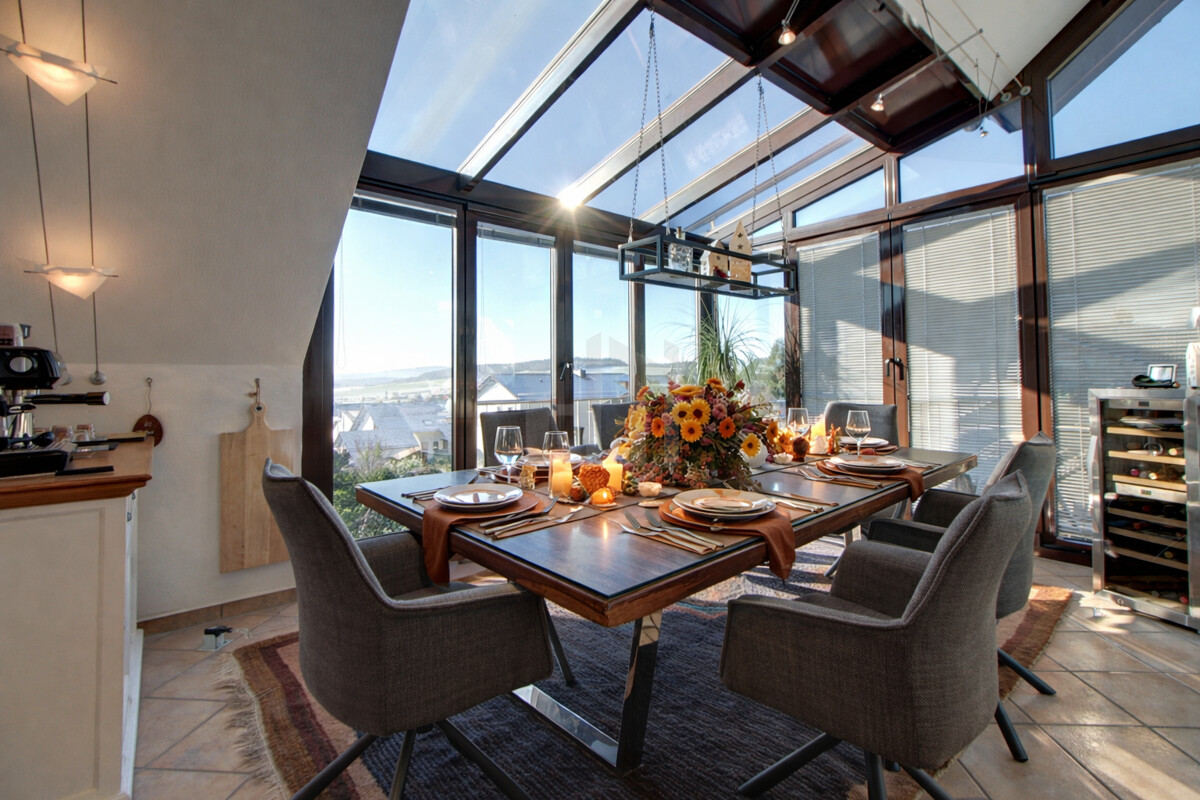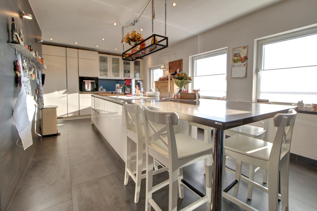 Mit über zehn Zimmern, fünf Bädern, zwei Kaminen, Wintergarten, Dampfdusche und finnischer Sauna entsteht hier Raum für ein vielseitiges Leben mit fantastischen Sonnenuntergängen!