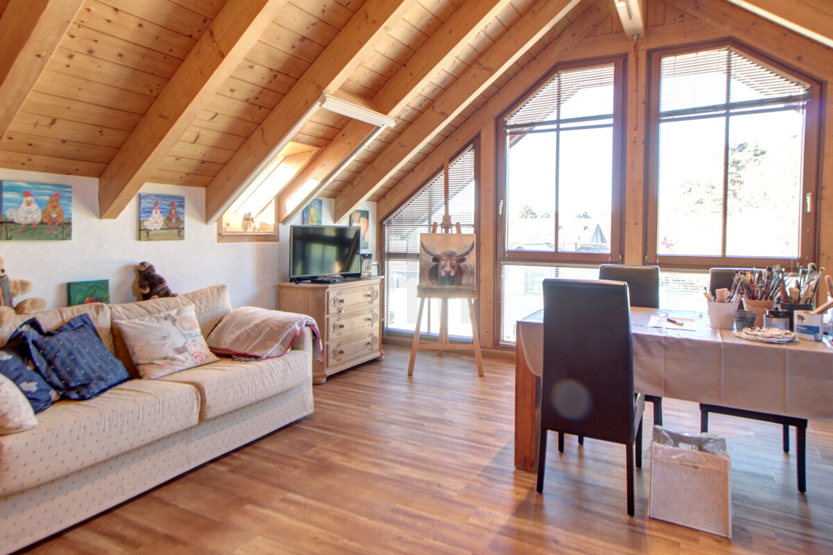 Das Obergeschoss bildet mit seinem offenen Galeriebereich das architektonische Herzstück. Große Fensterflächen eröffnen einen eindrucksvollen Fernblick bis zum Feldberg. Der Wohnbereich mit eigener Kaminecke schafft besondere Atmosphäre. Ein separates Esszimmer im Wintergarten, die halboffene Wohnküche, ein Schlafzimmer, zwei Bäder sowie eine Sauna ergänzen diese Ebene. Zwei weitere Studios eignen sich ideal als Arbeits- oder Kreativräume.