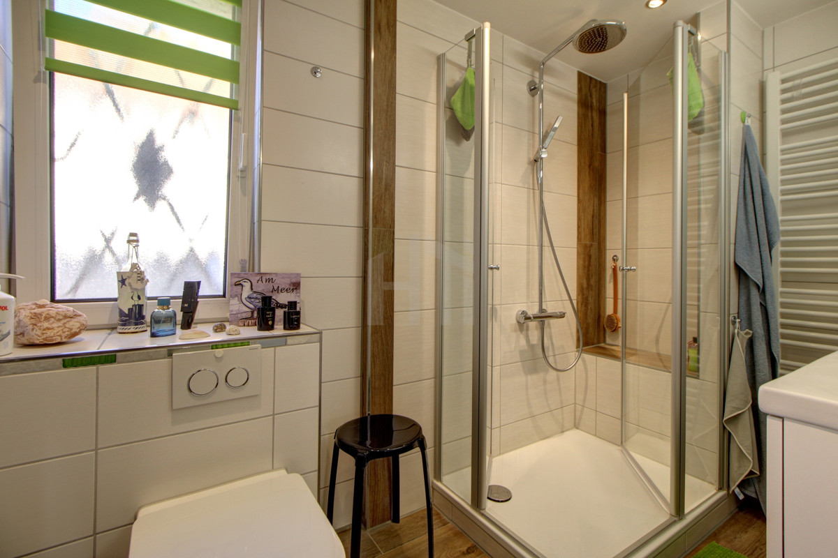 + Neues Bad mit Regendusche und Sitzbank, Doppelwaschtisch und Tiefspüler (2021)