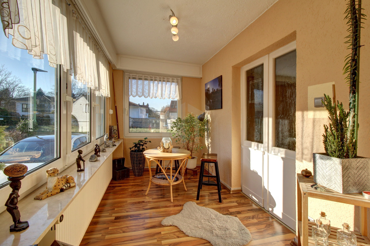 Und sollte es doch draußen mal so richtig ungemütlich sein, ist der helle Wintergarten ein