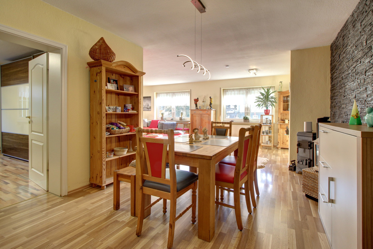 Die helle Wohnung zeichnet sich aus durch ihre vielen Fenster, die für viel Licht und Luft den