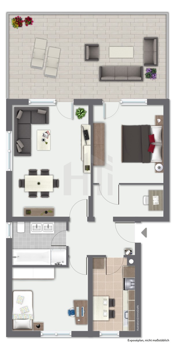 Diese lichtdurchflutete 3-Zimmer-Wohnung befindet sich im Erdgeschoss eines solide in massiver Bauweise errichteten Wohnhauses. Sie wohnen hier in familiärer Atmosphäre mit nur 4 Wohneinheiten. Zwei Schlafzimmer, eines davon mit abgetrenntem Arbeitsbereich, bieten Ihnen ausreichend Platz und Wohnkomfort zu zweit oder mit Ihrer kleinen Familie. Die moderne Alno-Einbauküche mit hochwertiger Glasrückwand ist mit Markengeräten von Siemens ausgestattet. Sämtliche Türen und Auszüge schließen mit Dämpfung.