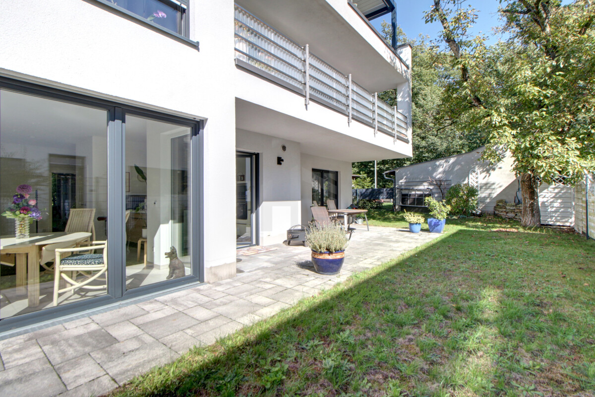 Die 4-Zimmer-Wohnung besticht durch ihre gehobene Ausstattung und ein luftiges Raumgefühl, unterstrichen von hohen Decken und einem stufenlosen Zugang. Die hochwertige Einbauküche mit modernen Elektrogeräten lädt zum gemeinsamen Kochen und Verweilen ein. Entspannen Sie im großzügigen Tageslichtbad mit bodengleicher Dusche oder genießen Sie die Sonnenstrahlen auf Ihrer eigenen Terrasse mit exklusiver Gartennutzung.